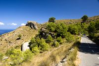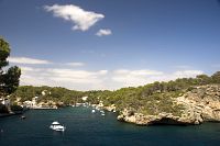 Tour Nr. 1 - Südliche Serra de TramuntanaGleich zu Beginn unseres Urlaubs zog es uns in dieses Gebirge, von dessen Schönheit uns Reiseführer und Bekannte erzählten. Über Andratx und den Coll de Sa Cremola steuerten wir nach Estellenc und hielten immer wieder an, um den Ausblick zu genießen. Hervorzuheben sind der Mirador de Roca und Mirador de ses Animes. Wir fuhren durch Banyalbufar weiter über eine Stichstraße mit vielen Serpentinen nach Port des Canonge. Wir kehrten dort in einer Tapas Bar ein. Danach sahen wir uns den verschlafen wirkenden Küstenort ein bisschen an. Am dortigen Strand, der nicht mehr als eine erodierten Böschung ist, lagen ein paar kleine Holzboote vor maroden Hütten und das Ambiente wirkte so, als wäre man am Regenwald in Südamerika. Danach ging es weiter nach Port de Valldemossa (Sa Marina) wo wir leider keinen Parkplatz fanden und vorbei an den Orten Deiá, Sóller und Fornalutx, die wir erst später besichtigen wollten. Als nächste Ziele steuerten wir die Stauseen Cuber und Gorg Blau an, die für die Trinkwasserversorgung des westlichen Teils Mallorcas wichtig sind. Die Strecke ist optisch der reinste Genuss und so blieben wir auch immer wieder stehen. Kurz hinter dem Embassament de Gorg Blau bogen wir ab nach Sa Calobra und fuhren eine der kurvenreichsten Straßen, die ich in meinem Autofahrerleben erlebt habe. Die Straße ist größtenteils einspurig und nur mit Ausweichspuren fahren entgegenkommende Fahrzeuge aneinander vorbei. Trotz der fahrerischen Mühen lohnte sich die Fahrt. Nach einem kurzen Aufenthalt an der wunderschönen Bucht von Sa Calobra fuhren wir wegen Parkplatzmangel weiter nach Cala Tuent. Diese Bucht hatte Gott sei Dank einen Parkplatz für unser Auto und so konnten wir beruhigt aussteigen und im Meer baden. Die Bucht ist richtig urwüchsig mit einem halb verfallenen Haus und Gebirge mit dichtem Wald. Irgendwie erinnerte diese Location an Abenteuerfilme mit Piraten oder Schiffbrüchigen. Leider wurde es immer später und im Hotel wartete das Abendessen auf uns und so fuhren wir danach zügig zurück, nur diesmal über Selva, Inca und dann die Autobahn nach Palma. Die zurückgelegte Strecke an diesem Tag betrug 233 km und die Fahrzeit 5:44h. Rückblickend bleibt festzustellen, dass diese Tour sicher die anstrengendste unseres Urlaubs war. Konzentration, fahrerische Ausdauer und die Lust und der Wille zum Lenken und häufigen Schalten sind notwendig um die Strecke zu bewältigen.